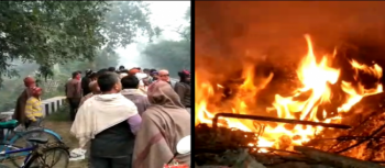 अनियंत्रित कार डिवाइडर से टकराई | आग लगने से कार में फंसा चालक जिंदा जला