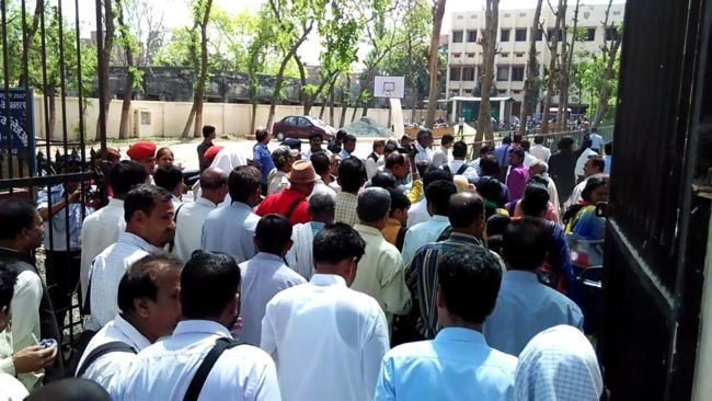 आरा में वित्तरहित शिक्षक संघ ने अपनी पांच सूत्री मांगों को लेकर परीक्षा की कॉपी मूल्यांकन का सामूहिक रूप से बहिष्कार कर दिया. कई शिक्षक सेंटर पर गए ही नहीं और जो नौकरी के डर से गए उन्हें शिक्षकों के झुण्ड ने वापस विदा करा दिया या फिर आंदोलन में शामिल कर लिया. सरकार की अनदेखी के कारण शिक्षको का आर्थिक तंगी से बुरा हाल है जिसे लेकर पूरे जिले के शिक्षक शुक्रवार को सड़क पर उतर गए. शिक्षकों ने जिला स्कूल में कॉपी जाँचने पहुंचे शिक्षकों को काम ठप करा कर एस बी कॉलेज की ओर चले गए. गेट पर पहले से मौजूद पुलिस ने हालांकि मोर्चा संभाल रखा था, लेकिन उनकी एक न चली. हो-हल्ला और नारों के बीच एडीएम की गाड़ी जैसे ही पहुँची उसके साथ ही शिक्षकों का झुण्ड गेट के अंदर पहुँच वहां भी कॉपी चेक कर रहे शिक्षकों को अपने साथ मिला लिया.