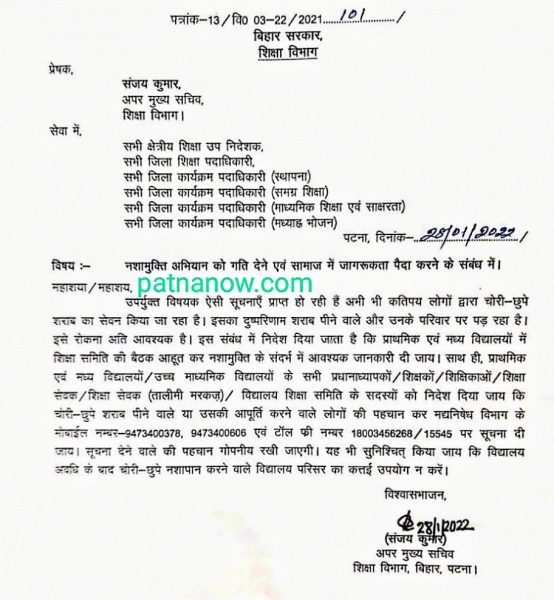 बिहार में नशा मुक्ति अभियान के साथ शिक्षकों को जोड़ने के संबंध में शिक्षा विभाग के पत्र के बाद सरकार और शिक्षकों के बीच ठन गई है. सरकार की ओर से यह आदेश जारी हुआ है कि सभी स्कूलों में शिक्षा समिति की बैठक बुलाई जाए और सभी शिक्षकों के लिए नशा मुक्ति अभियान के प्रति लोगों को जागरूक करने को कहा जाए. शिक्षकों के लिए यह भी निर्देश जारी हुआ है कि उन्हें सरकार के टोल फ्री नंबर पर शराब का सेवन करने वाले या शराब की बिक्री करने वाले की जानकारी देनी होगी, जिसके बाद शिक्षकों ने इसे तुगलकी फरमान बताते हुए आदेश को वापस लेने की मांग की है.