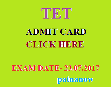 बिहार TET के लिए एडमिट कार्ड जारी हो गया है. परीक्षा 23 जुलाई को 2 पालियों में होगी. अपना परीक्षा केन्द्र जानने के लिए आप ऊपर दिए गए स्थान पर क्लिक करें. या फिर इस लिंक पर क्लिक करें.