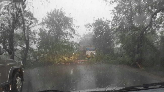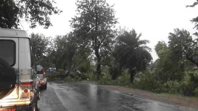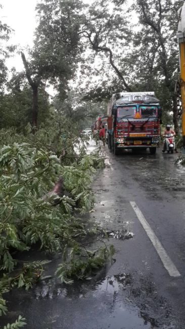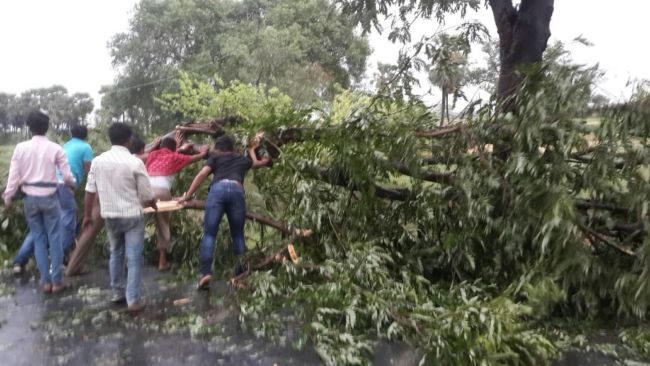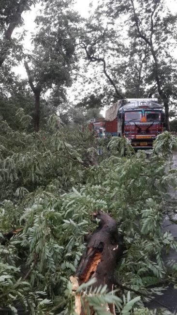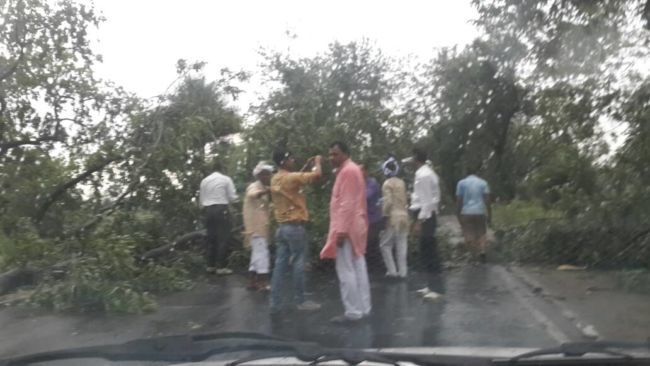 पटना से नालंदा के रास्ते में NH पर तेज आंधी के कारण कई जगहों पर पेड़ गिरने से रास्ता अवरूद्ध हो गया.