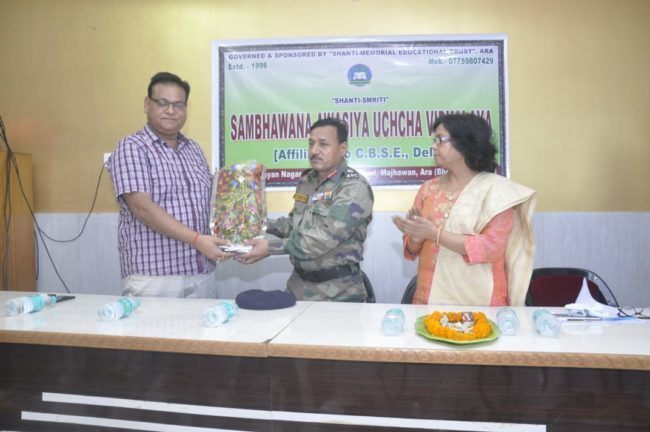आरा, मझौआँ स्थित स्थानीय संभावना उच्च विद्यालय में शुक्रवार से NCC का शुभारंभ हो गया. इस मौके पर 5 बिहार बटालियन के कमांडिंग ऑफिसर कर्नल निर्भय कुमार को विद्यालय ने सम्मानित किया. बताते चलें कर्नल विनोद जोशी के स्थानांतरण के बाद कर्नल निर्भय अभी हाल ही में आरा आये हैं. कार्यक्रम का उद्घाटन कर्नल निर्भय कुमार, विद्यालय के प्रबंध निदेशक कुमार द्विजेंद्र और विद्यालय की प्राचार्या अर्चना सिंह ने संयुक्त रूप से दीप प्रज्वलित कर किया.