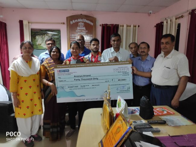 अनन्या आनंद ने टी.पी.एस. काॅलेज, पटना के नाम को रौशन किया है. बी.ए. अंग्रेजी आनर्स की इस होनहार छात्रा ने राष्ट्रीय कराटे चैम्पियनशिप 2018 में स्वर्ण पदक प्राप्त किया है. इसके लिए राज्य कराटे संघ, बिहार ने अनन्या को चालीस हजार रूपये का पुरस्कार दे कर सम्मानित किया है. नई दिल्ली में आयोजित इस राष्ट्रीय प्रतियोगिता में अनन्या ने हरियाणा को शिकस्त दे कर यह जीत हासिल की है. टीपीएस कॉलेज के मीडिया प्रभारी प्रो. अबू बकर रिजवी ने patnanow को बताया कि आगामी 05-07 अप्रैल को गौहाटी में आयोजित होने वाली राष्ट्रीय कराटे प्रतियागिता 2019 में अनन्या बिहार का प्रतिनिधित्व करने जा रही है. स्वर्ण पद एवं पुरस्कार की राशि प्राप्त करने के बाद महाविद्यालय आने पर महाविद्यालय के प्रधानाचार्य प्रो. उपेन्द्र प्रसाद सिंह ने अनन्या का स्वागत किया एवं अपने आर्शिवाद से नवाजा. इस अवसर काॅलेज के खेल प्रभारी प्रो. कृष्णनन्दन प्रसाद, प्रो. श्यामल किशोर, अंग्रेजी विभाग की अध्यक्ष प्रो. हेमलता सिंह, प्रो. रूपम, प्रो. अबू बकर रिजवी, प्रो. शशि भूषण चैधरी, प्रो. विजय कुमार सिन्हा, ने भी अनन्या के उज्जवल भविषय एवं विजय की शुभकामना दी.