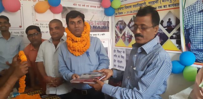 गड़हनी,25 अक्टूबर. प्रखंड कार्यालय के सभागार में प्रशीक्षु उप समाहर्ता सह बीडीओ धीरज कुमार सिन्हा का विदाई सह सम्मान समारोह का आयोजन प्रखंड सह अंचल कर्मियों द्वारा विधिवत किया गया था। जिसमें सभी प्रखंड सह अंचल कर्मियों द्वारा उन्हें सम्मानित करते हुए विदाई दिया गया। इस समारोह की अध्यक्षता अंचलाधिकारी नंदकिशोर सिंह एवं संचालन प्रमुख पति निर्मल यादव ने किया। निर्मल यादव द्वारा अंगवस्त्र एवं पुष्प माला देकर सम्मानित किया गया।मौके पर उपस्थित सभी कर्मी एवं जनप्रतिनिधियों व मीडियाकर्मियों द्वारा माल्यार्पण किया गया।प्रखंड के सभी कर्मियों के साथ साथ जनप्रतिनिधियों ने विदाई समारोह के मौके पर अपने संबोधन में प्रशीक्षु उप समाहर्ता के कुशल प्रशासक एवं मृदु स्वभाव का चर्चा करते रहे।वही प्रमुख पति ने संबोधित करते हुए कहा कि गड़हनी का इतिहास हैं यहाँ से जो लोग प्रशिक्षण प्राप्त कर जाते हैं वह सामान्य प्रशासन में अग्रसर ऊंचे पायदान पर पहुंच जाते हैं।