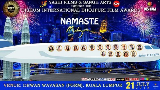 भोजपुरी फिल्मों से जुड़े सितारों को लेकर आज दो बड़े आयोजन हो रहे हैं. एक आयोजन जहां देश की राजधानी दिल्ली में हो रही है वही दूसरा आयोजन मलेशिया में हो रहा है. मलेशिया में याशी फिल्म्स प्राईवेट द्वारा इंटरनेशनल भोजपुरी फिल्म समारोह का आयोजन किया गया है,जहाँ भोजपुरी फ़िल्म जगत की कई नामी हस्तियाँ मनोज तिवारी,रविकिशन, दिनेशलाल यादव निरहुआ, पवन सिंह,आम्रपाली दुबे मधु शर्मा समीर आफताब, वितरक निशांत, पंकज तिवारी, अवधेश मिश्रा,अनंजय रघुराज,राघव नैय्यर आदि पहुंचे हैं.
