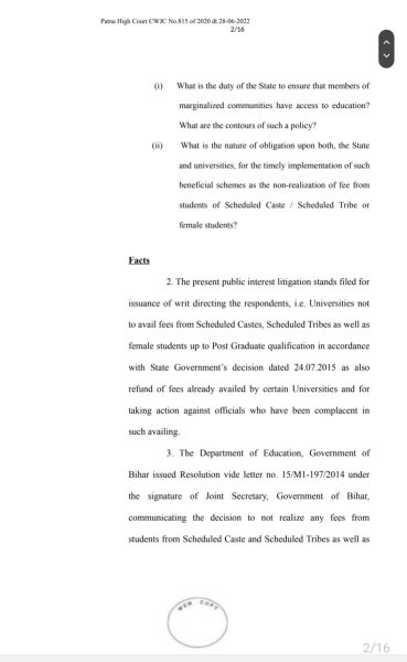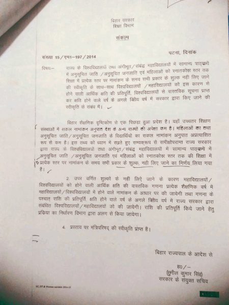 हाईकोर्ट का आदेश को ठेंगा दिखा नामांकन के नाम पर SC व ST छात्रों से ₹-1800 की हो रही है वसूली