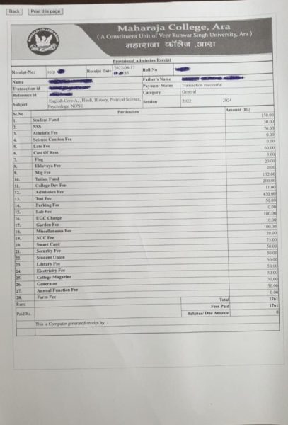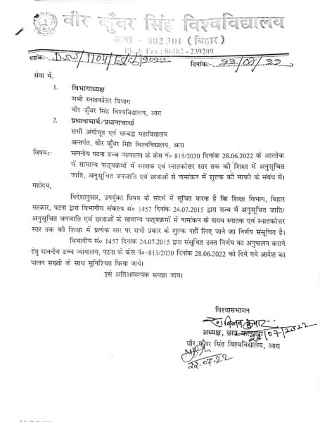 आरा, 18 अगस्त. बिहार का कुँवर सिंह विश्वविद्यालय हमेशा से सुर्खियों में रहा है. कभी नामांकन को लेकर तो कभी भाषा की पढाई के अस्तित्व को लेकर. अब इसके अंतर्गत आने वाले कॉलेज भी इसमें पीछे नही हैं. कॉलेज तो दो कदम आगे निकल न सिर्फ विश्वविद्यालय के नाम को नीचा कर रहे हैं बल्कि हाईकोर्ट के आदेश को भी ठेंगा दिखा अपनी झोली भरने में इतने मशगूल हैं कि इनके आसपास कानून का डर तक गायब हो गया है. मामला आरा के चर्चित महाराजा कॉलेज का है. नाम महाराजा लेकिन काम भिखारियों जैसा. जिस अनुसूचित जाति, अनुसूचित जनजाति व छात्राओं को मुफ्त शिक्षा देने की कानून हिमाकत करता है उसी से कॉलेज ऑनलाइन नामांकन के नाम पर आरा में अनुसूचित जाति, अनुसूचित जनजाति व छात्राओं से 1700 से 1800 रुपये विभिन्न मदों में वसूल कर रहा है. अगर देखें तो यह विवि की भी एक तरह से अवहेलना है.