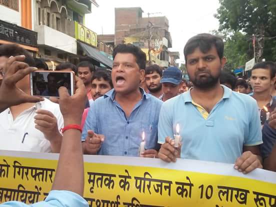 स्वर्ण-व्यवसायी के हत्यारों की गिरफ्तारी के लिए शहर में व्यवसायियों ने निकला कैंडल मार्च