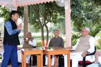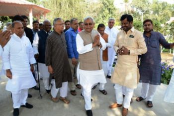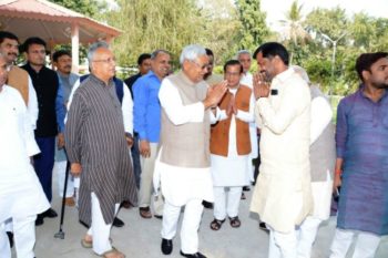 पटना । जापान की चार दिवसीय यात्रा पर रवाना होने से पहले मुख्यमंत्री नीतीश कुमार को जेडीयू के नेताओं ने शुभकामनायें दी. मुख्यमंत्री आवास पहुॅच कर इन नेताओं ने नितीश कुमार को पुष्पगुच्छ देकर उनका अभिनंदन किया. इस मौके पर शुभकामनाएं देने वालों में राज्यसभा सांसद आरसीपीसिंह, जदयू के प्रदेश अध्यक्ष वशिष्ठ नारायण सिंह, ग्रामीण विकास मंत्री श्रवण कुमार,