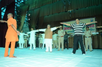 राजभवन में आयोजित ‘योग शिविर’ में राज्यपाल सचिवालय के सभी अधिकारी, राजभवन के सभी कर्मचारी और उनके परिवार के सदस्य, सुरक्षाकमिर्यों आदि ने उपस्थित होकर योग के विभिन्न आसनों एवं प्राणायाम आदि का प्रशिक्षण प्राप्त किया. कार्यक्रम के दौरान बिहार स्कूल ऑफ योगा, मुंगेर के प्रशिक्षक विजय शंकर ने योग के संक्षिप्त इतिहास, विकास-परम्परा, स्वास्थ्य एवं कल्याण के लिए यौगिक अभ्यास की उपयोगिता, सात्विक विचार के लिए सम्यक् भोजन-विधि आदि पर प्रकाश डालने के साथ साथ ताड़ासन, पादहस्तासन, अर्द्धचक्रासन, वज्रासन, शशकासन, भुजंगासन, मकरासन, पवनमुक्तासन, शवासन आदि के अतिरिक्त, कपालभाति एवं अनुलोम-विलोम, शीतली एवं भ्रामरी प्राणायामों के साथ-साथ ध्यान विधियों का भी अभ्यास कराया.